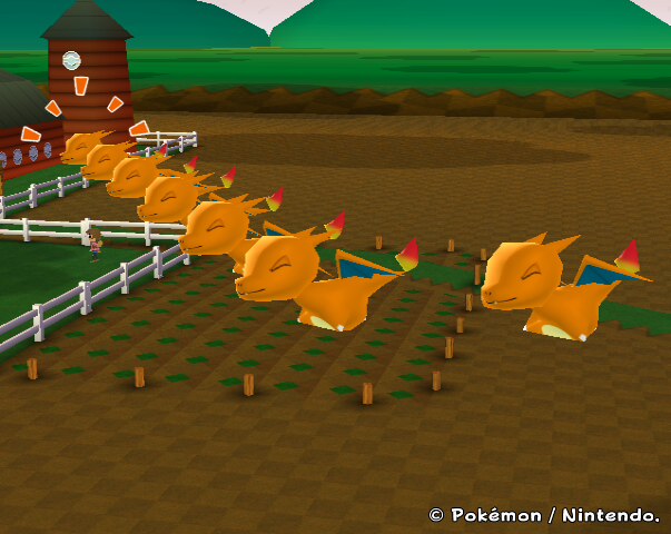 自分の持っているリザードン(十数匹)を牧場に集めてみた