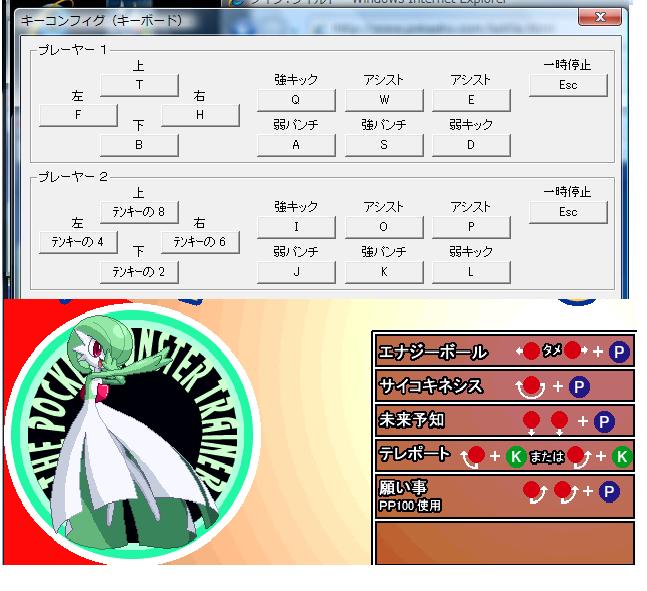 操作説明と必殺技をキャプって画面の端っこに置き見ながら対戦してました、っと(